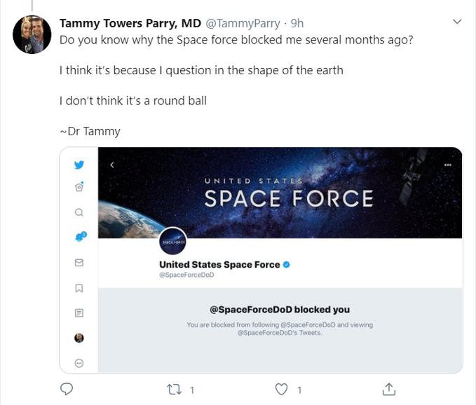Below are some tweets and videos featuring Dr. Tammy. She’s an interesting case. She is a flat earther and believes in many conspiracy theories - including Austin Steinbart who claims he is Q and is from the future.