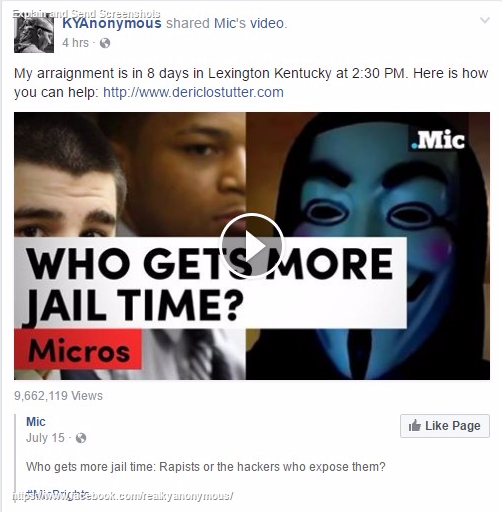 3 years passed, and on July 7th, the Kentucky United States District Attorney, Kerry Harvey, and his assistant attorneys, Neeraj Gupta and Andrew Sparks, decided to ignore the voices of a nation of victims and advocates against rape, and charge Deric Lostutter with 3 felonies under the draconian and archaic Computer Fraud and Abuse Act, which was enacted in 1984.