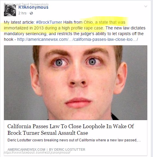 I am not a “Steubenville native”. I lived in Steubenville for approximately 5 years in the late 90s. I NEVER reached out to Anonymous for help. On August 26, 2012, after leaving a voicemail for a friend who was an Ohio BCI agent involved in the case on August 24th, and alerting him that I had found screenshots, I made the decision to post what I had found. I figured that he would have called me if LE didn’t have the screenshots, and as it turned out…they did and had social media evidence from the moment Jane Doe’s parents reported the crime.