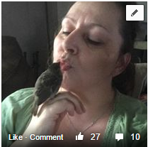 I write all the time. I always have a notebook nearby and will sit for hours either writing letters (snailmail) or working on my manuscript. She gets perturbed when I am not paying complete attention to her, so she throws herself on my notebook and flaps her head and feathers around while flitting across the paper. LOL Yes…it’s a great way to get my attention. I really don’t have any choice but acknowledge her when she does this. haha She comes to me when I call for her and will fly to my finger to perch, and she knows when I turn out the living room lights that it is “night night” time. She flies to me, settles in on my chest and waits for me to put her soft fuzzy blanket over her so I can pet her head and between her wings while telling her that everyone is going to sleep, and she needs to as well. She makes the cutest little baby chirps and is engaged while I talk to her. She is just the sweetest little thing.